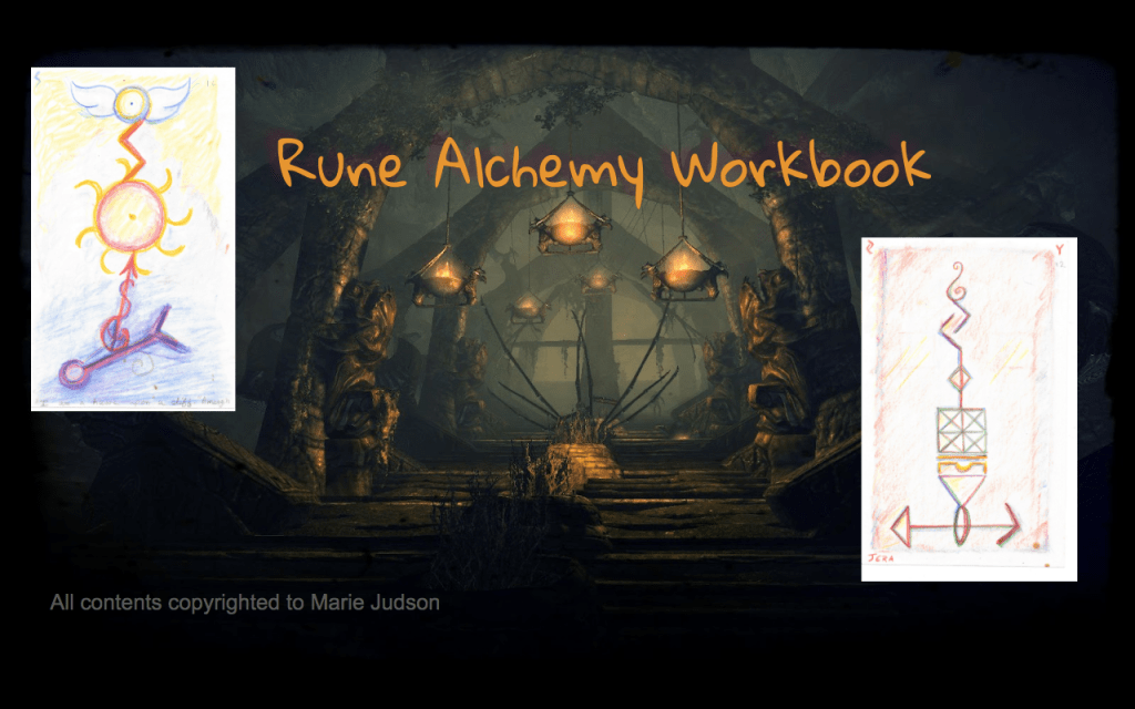After a while, I began to design sigils—a combination of multiple symbols blended together to have a more complex or integrated meaning. Over years, I developed a full set of the twenty-four runes combined with alchemical symbols and more recent rune sets (such as dragon runes). I added information from ancient sources such as the Ogham and corresponding sacred plants to the backs of the cards. I thought I might develop the designs into tarot cards. That might happen someday but, for now, I decided to create a workbook that allows people to write reflections on the designs, with prompts. It’ll be going out with welcome emails to anyone who signs up for my newsletter.