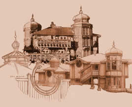 Close by is St. Orres, a 50-acre “coastal sanctuary” which “echoes and honors the romantic Russian heritage of the Area.” Originally called the Seaside Hotel, built in 1929, the hotel had a general store where the dining room is now located. “There were gas pumps in front, as the original highway passed just a few feet to the west of the hotel. Upstairs were 10 rooms, mostly used by loggers in the summer and fisherman in the winter … Five small cabins were scattered around a meadow behind the hotel.” In 1971, three guys from Marin bought the 28 acres between there and Gualala and brought their families to live in the cabins and one partner, an architect, developed what is now St. Orres. I couldn’t find any photos of the old hotel that came before.