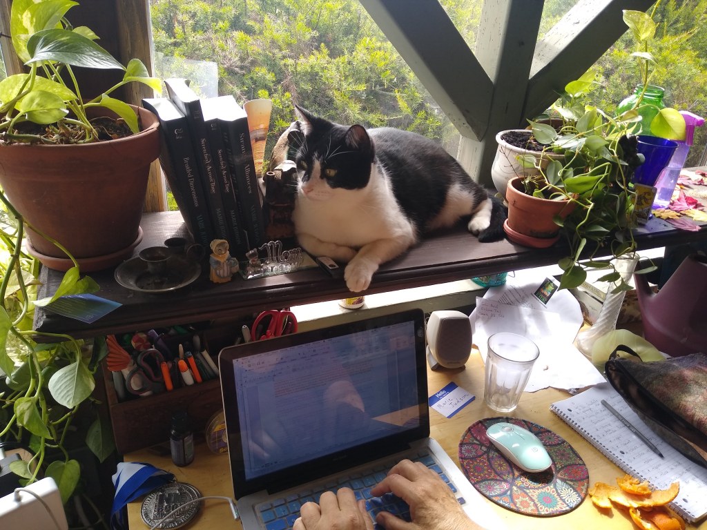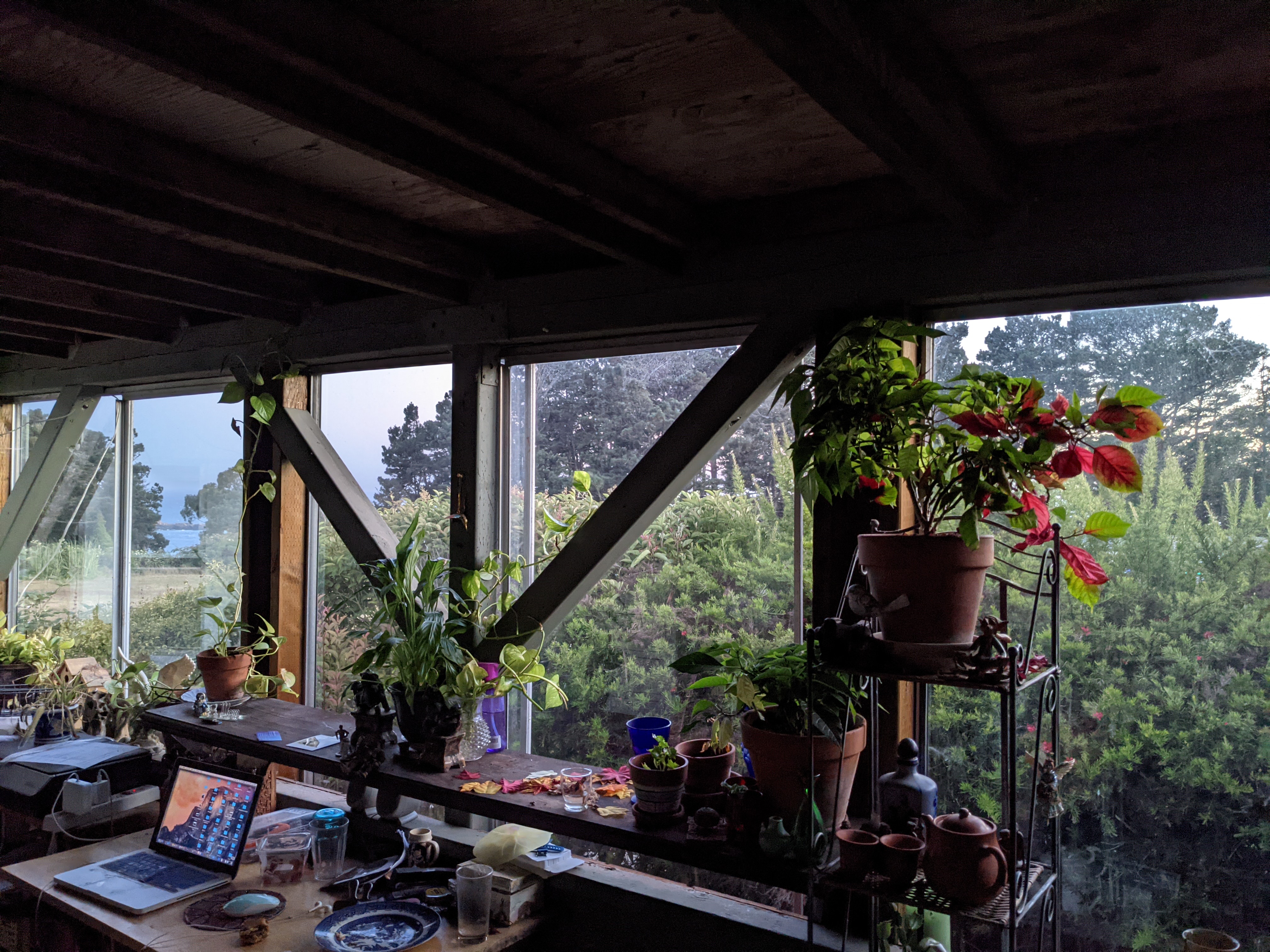I’ve talked about the hummingbirds in the bottlebrush outside my window. And the sea view. But what is space itself? What does it mean to be able to spread out into any project? What does it mean to our entire psyche and sense of potential creativity?
