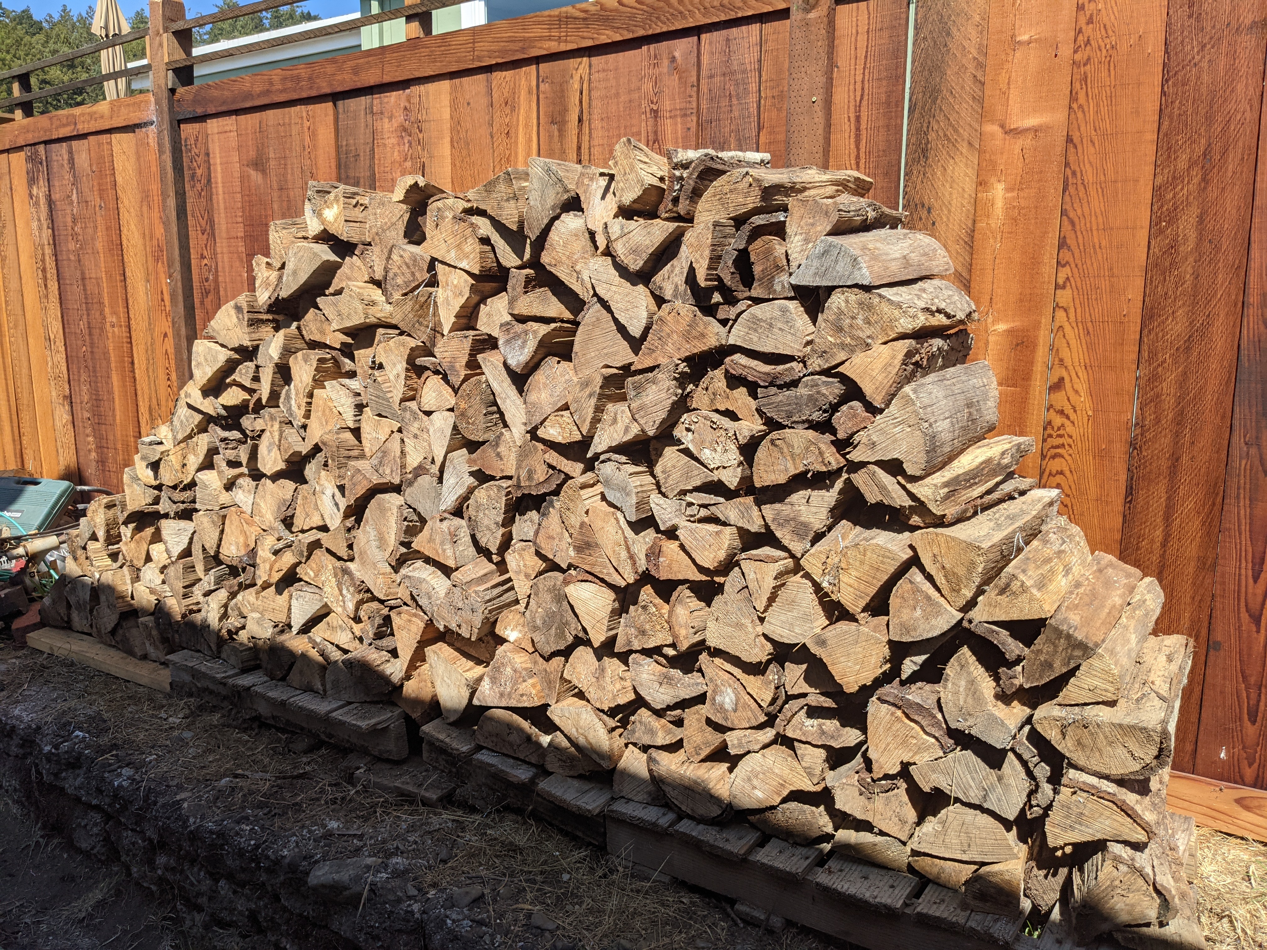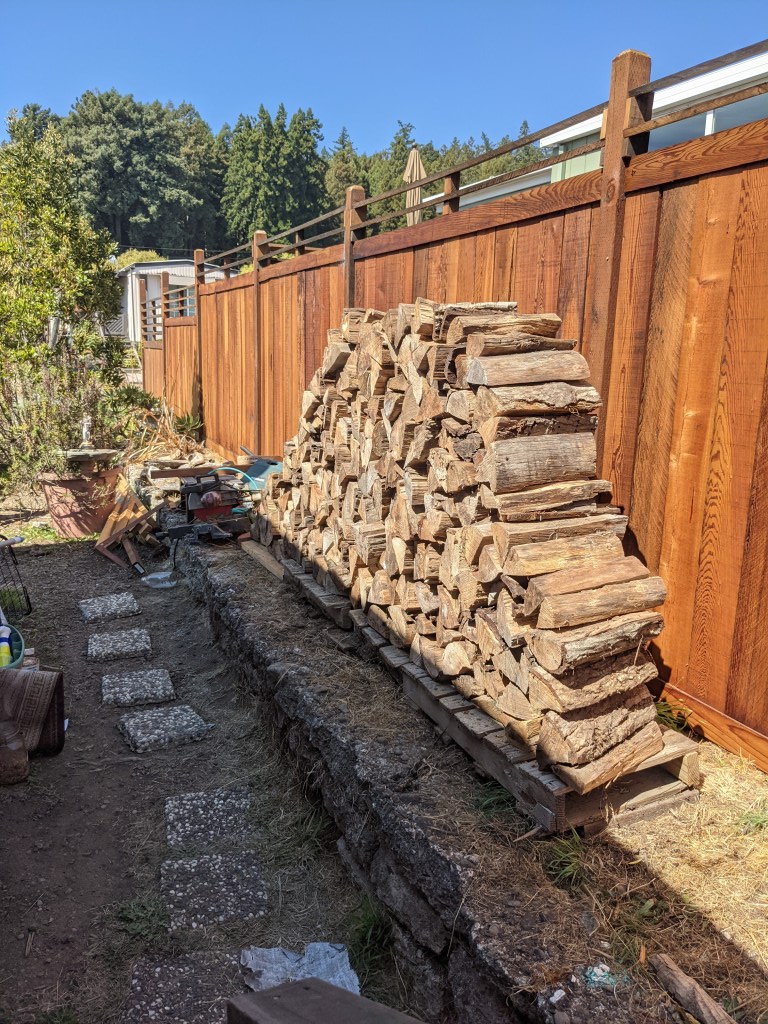 I still had to do a lot of double-work, to unbury the pallets underneath and move them to the other side and stack. I’m proud of my pile, but figure I’ll have to reinforce with rebar pounded in at the ends.