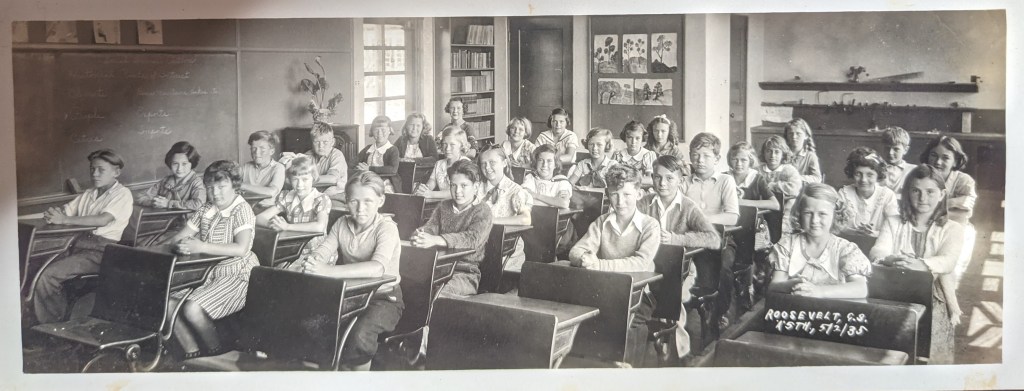 While we’re looking at old schools, here’s my mom’s class in Southern California in the 1930s. It’s strange to see her there and imagine the hours she spent, mind drifting, daydreaming. To look across this panorama of faces, each so full of personality, is like a journey.