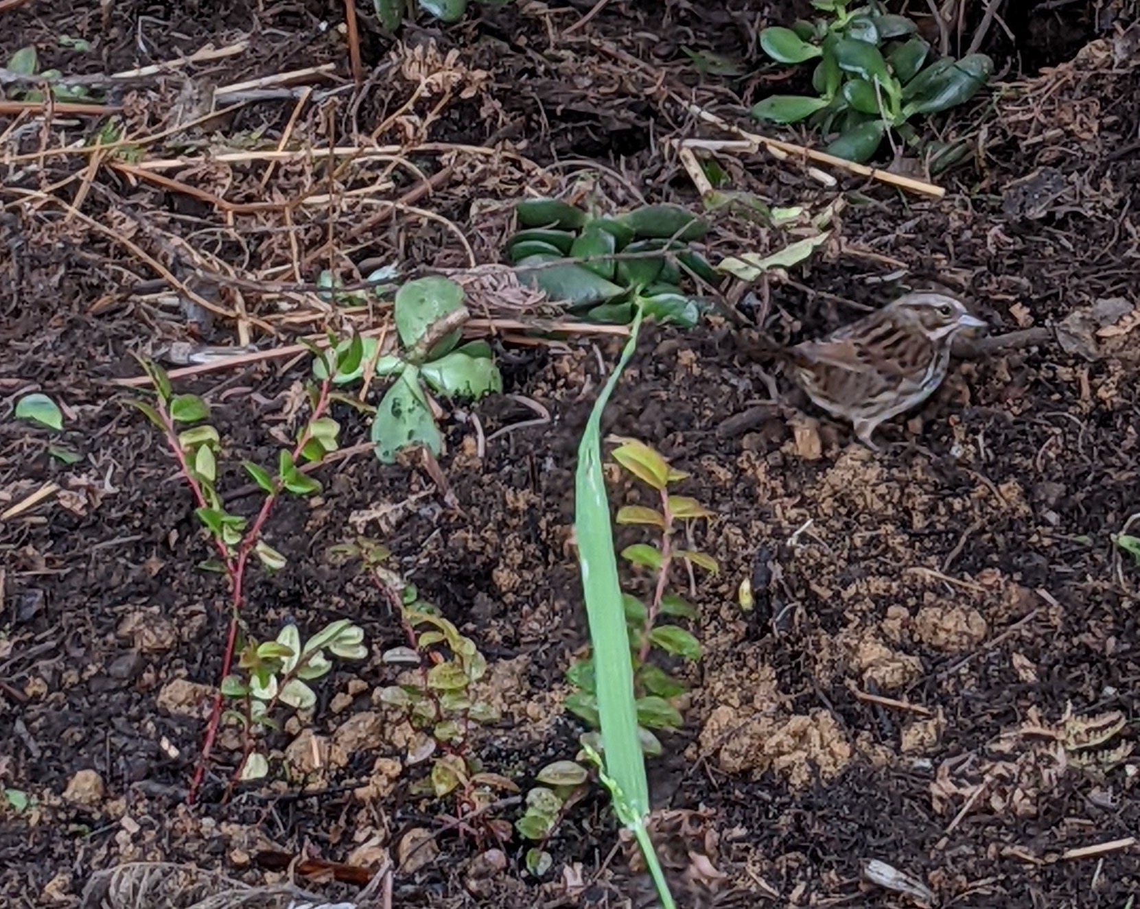 I dug a hole and put in the first little huckleberry, leaving a bit of moss from Cheryl’s yard on top. As I admired my work, a small bird flitted down and approached the new berry plant, flicking dirt and pecking. No better affirmation. “Hello. You’ve joined our little ecosystem. Welcome. Let me see what yummy things you’ve brought with you.”