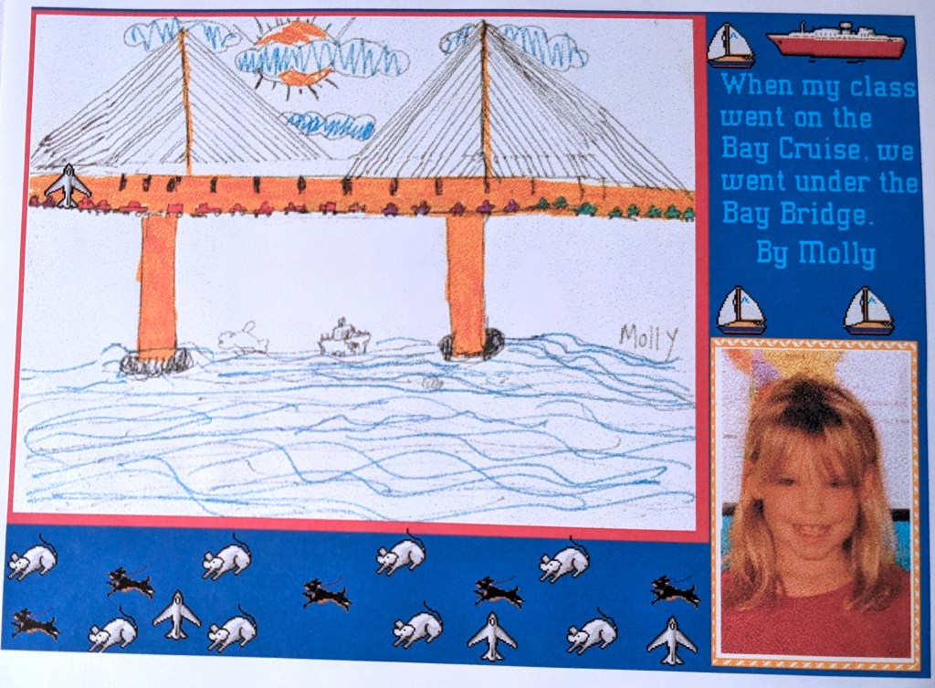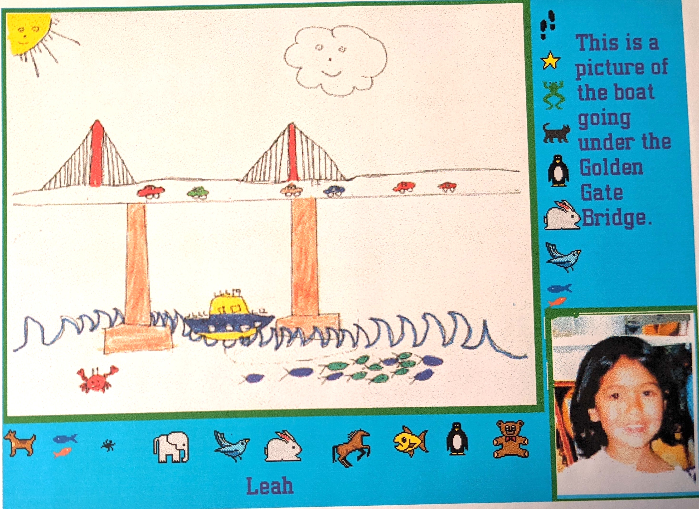 Ever since I helped elementary teachers in Berkeley work on KidPix slide shows with their students, about a field trip on the Bay, I’ve been aware of this phenomenon—the immediate difference it makes when we’re aware of expanded audience. I watched the six and seven year olds refining their projects in an intensive way I’d never seen for ordinary school assignments. First they illustrated their experience. Seeing their colorful drawings scanned and on the computer screen, they then scripted what words would go with them. They typed and read aloud, recording their voices, reading, rereading, hearing their friends responses, noticing what would improve it, editing some more. These slideshows looped during Open House; such a simple technology yet such a hit!