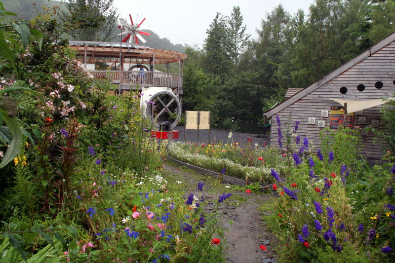 Machynlleth, an old market town of slate walls, bridges and buildings, is entirely fitting for a winter fair. Now, there’s an amazing seven-acre Centre for Alternative Technology (in Welsh, Canolfan y Dechnoleg Amgen) close to town that draws a lot of visitors. It’s grown to be more of an eco-centre, demonstrating sustainable development. Created in 1973, it was inspired by the book Small Is Beautiful, A Blueprint for Survival. They teach about organic farming, and have wonderful gardens and a great cafe. The site was the Llwyngwern Slate Quarry from the 1800s. You can still see the aerial ropeway and steam engine that lifted out waste rock from the pit.