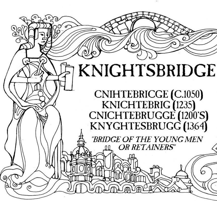 Curious, I looked up Knightsbridge. Besides being an affluent part of London, it’s an ancient word meaning “bridge of the youth or retainers.” The spelling was Cnihtebricge c. 1050. Cniht, in pre-Norman days, did not have the later meaning of knight as in a warrior on horseback, but simply meant youth. Cnihtebricge seems to have meant a place where youth congregated. Bridges and wells have often been gathering places,