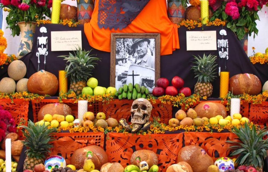 This evening, a writer friend posted in her newsletter an invitation for readers to write 100 words about “home,” whatever that word conjures. What came to my mind was the project I’ve started in my classroom: a Dia de los Muertos altar. I’d never tried doing a full one. With the incentive of pleasing and benefiting my students, I found two nice cloths at home and covered a chest-high rolling wooden cabinet in my classroom. I made a layer at the back with a box to bring part of it higher up. I added candles and a few statues. I hung a sort of Celtic cross, stone-colored, in deep relief, above. A tissue paper flower arch over would be good. Maybe I can look up how to make one. One of my students has a photo of her gramma and uncle on it. I brought pics of my grandmothers and parents.