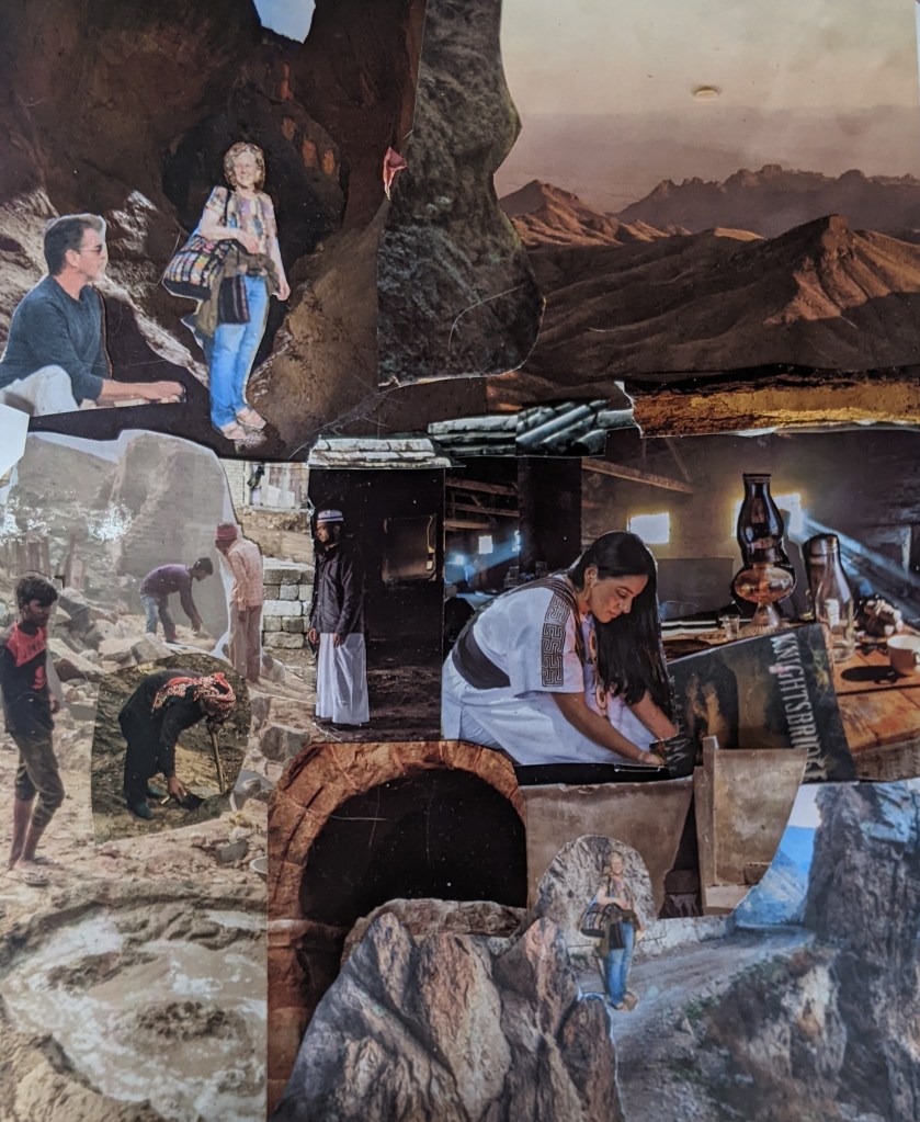 Real pay dirt (so to speak!) came when I hunted through hundreds of National Geographics for a feeling of a Middle Eastern work yard. I found about ten scenes that fit and what were they all doing? Making bricks! That’s the kind of discovery one can make in drawing or collaging a dream.