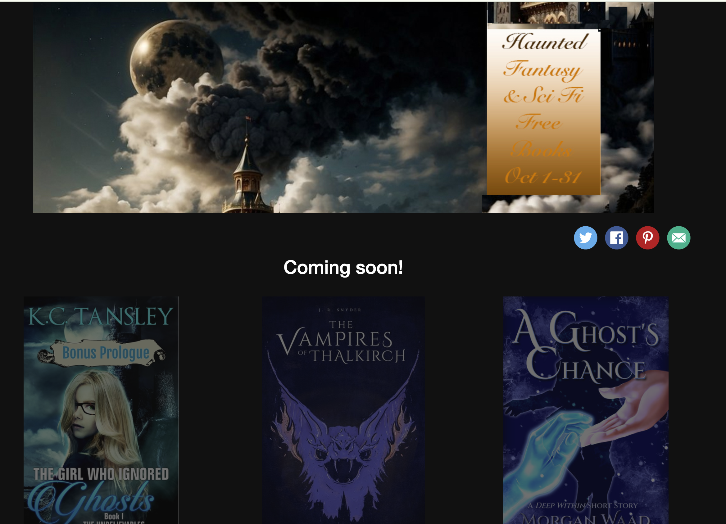 This is my fourth year taking part in newsletter promotions on BookFunnel. Twice a month, I give away either a taster of a novel or the full book, along with other indie authors. Each month, notices come to my email about others' promotions. Some people run constant ones. A handful are run by small publishers but most are just authors like me coming up with a way to present many independent writers' books along with their own, to get their name better known. Well into my fourth year, I've decided to try my hand at running my own promotion! (The build up to it is shown in the image above.) I decided on October with the season-related theme, Haunted!