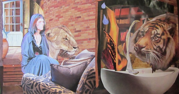 In the last months before I left the Ph.D. program without the letters behind my name, I had a beautiful dream I call “Renaissance Woods” (see collage/painting below) in which an Englishman, my close and loving companion, begs me to do what he wants and points to a table in the forest full of writing and art materials.